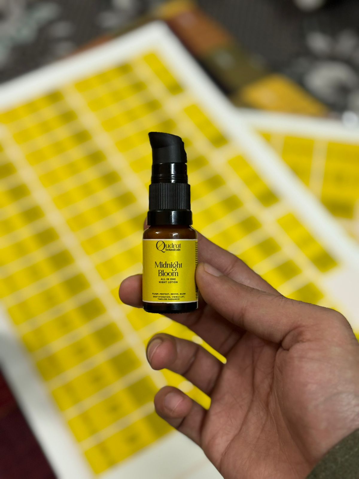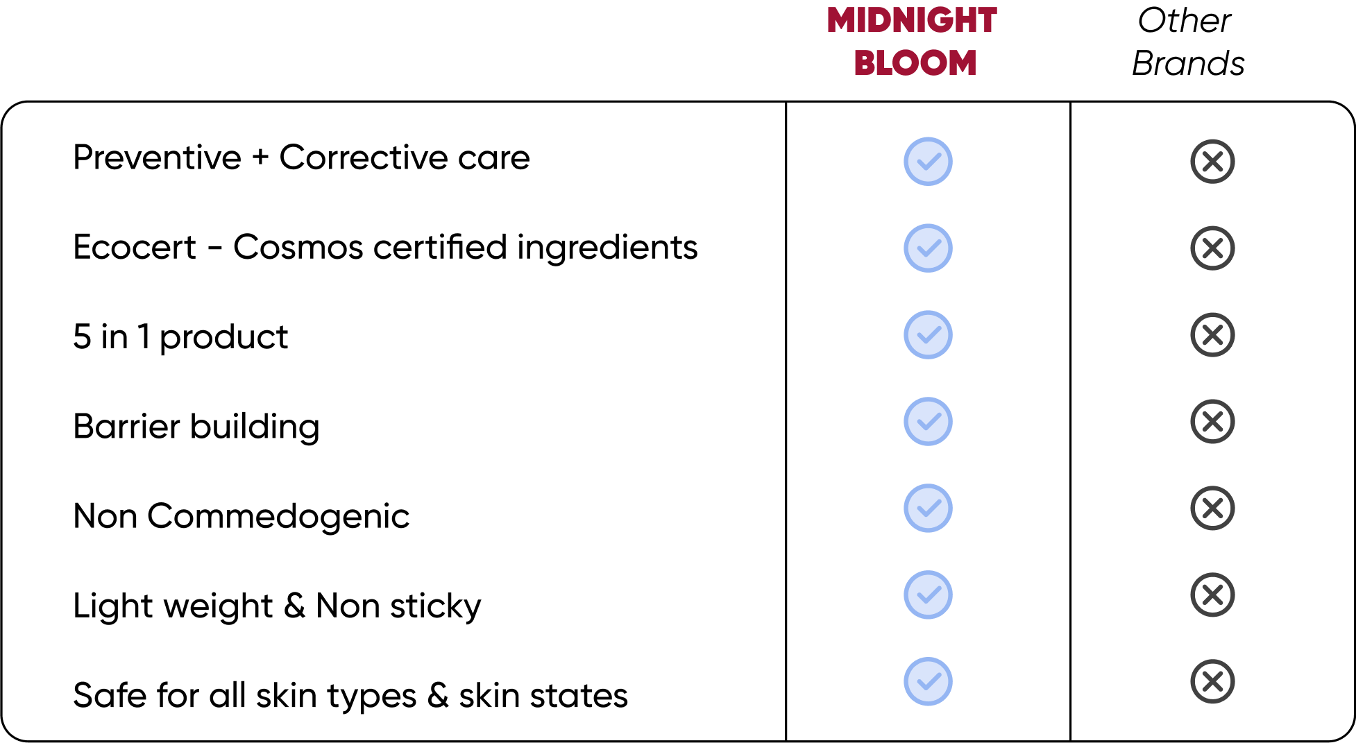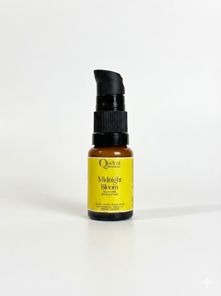 You don’t need retinol with Midnight Bloom. Powered by natural retinol alternatives like Bakuchi and Chebula, along with hydrating actives and antioxidant-rich botanicals, it delivers all the age-defying benefits — firming, brightening, and wrinkle prevention — without irritation. It’s your all-in-one, gentle yet effective skincare solution.